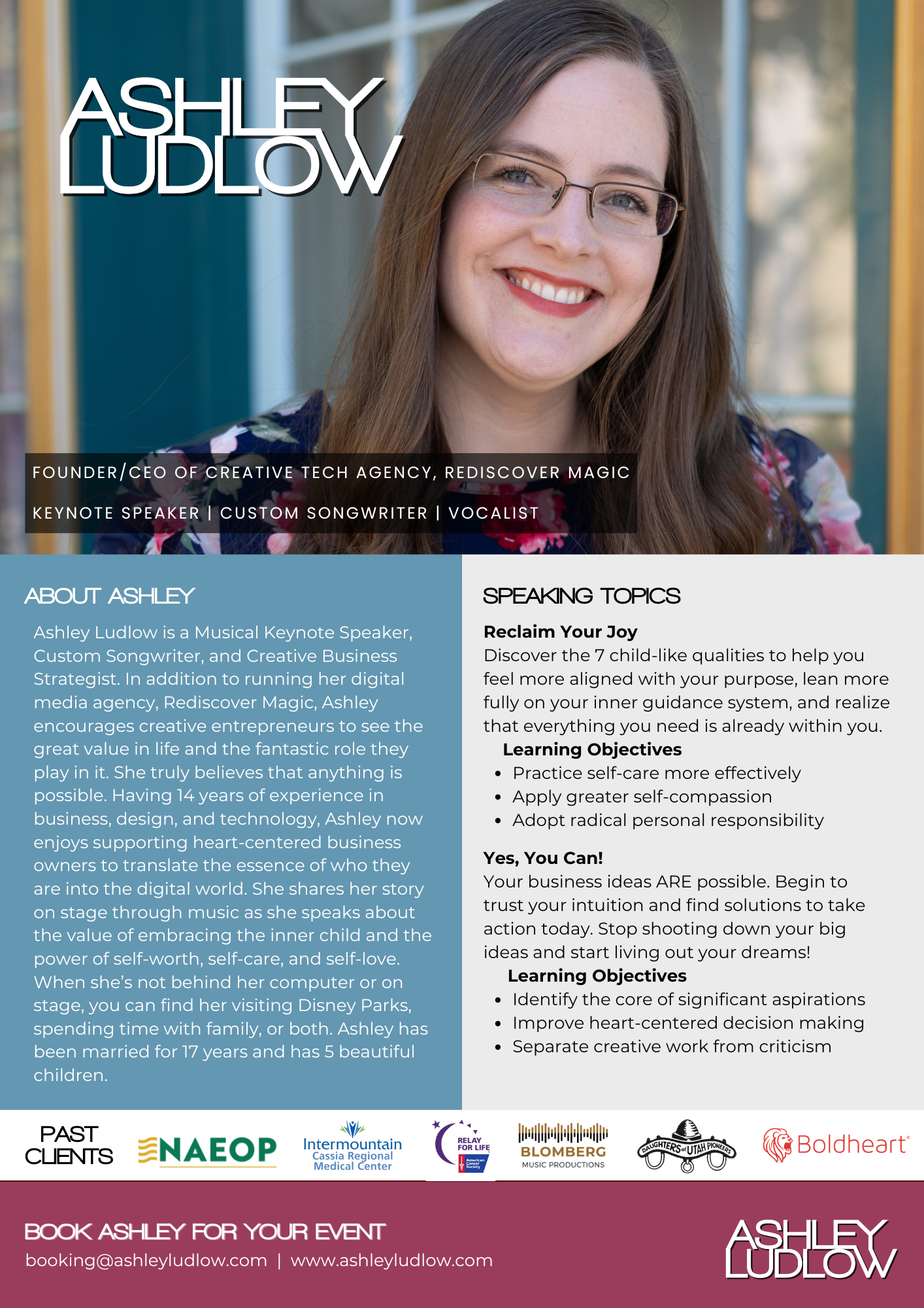 BOOK ASHLEY FOR YOUR EVENT: